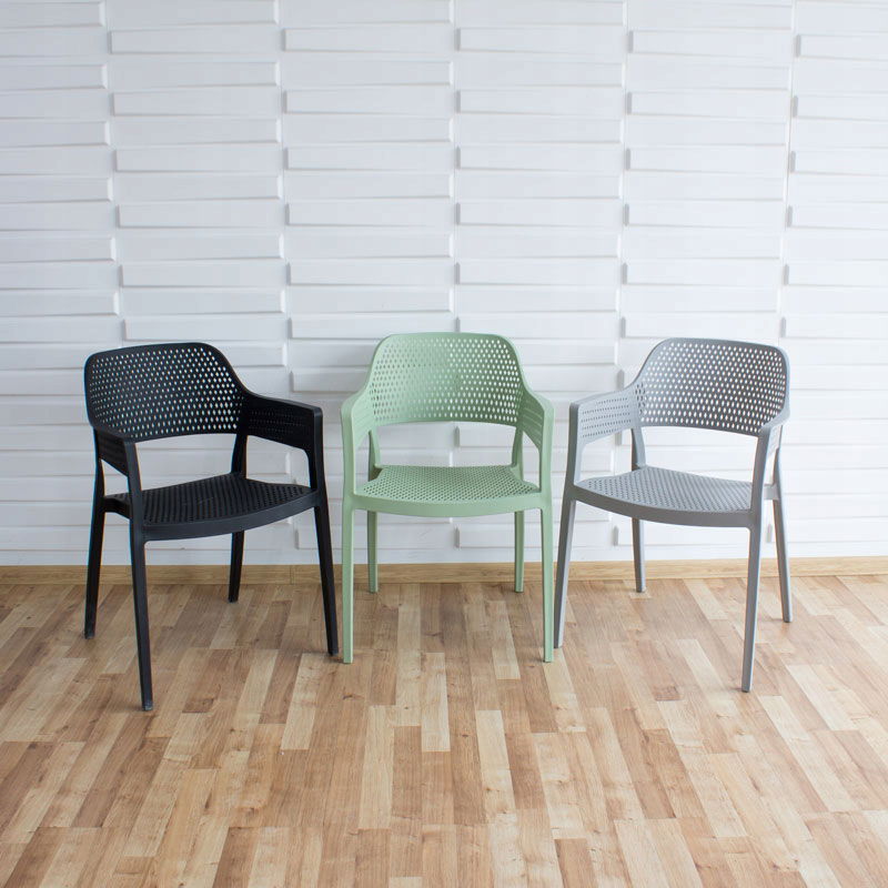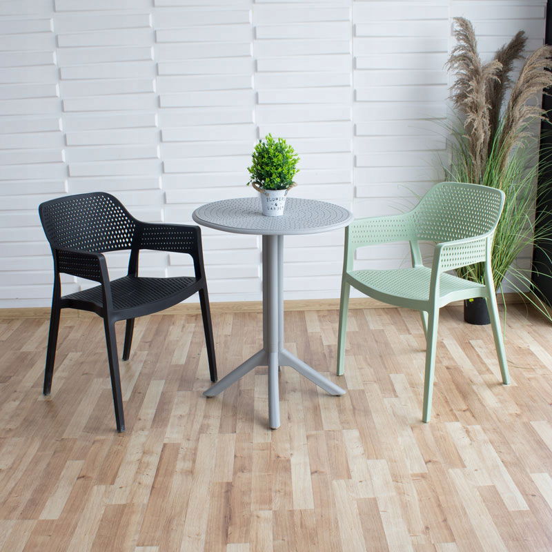 Wykonane z wysokiej jakości tworzywa sztucznego (polipropylen), krzesło charakteryzuje się dużą odpornością na czynniki atmosferyczne, co sprawia, że idealnie nadaje się do ogrodu, na balkon czy taras.