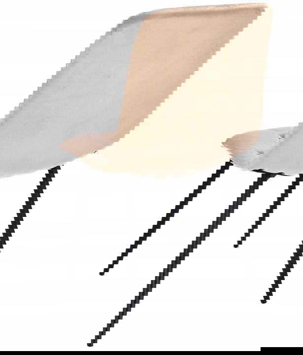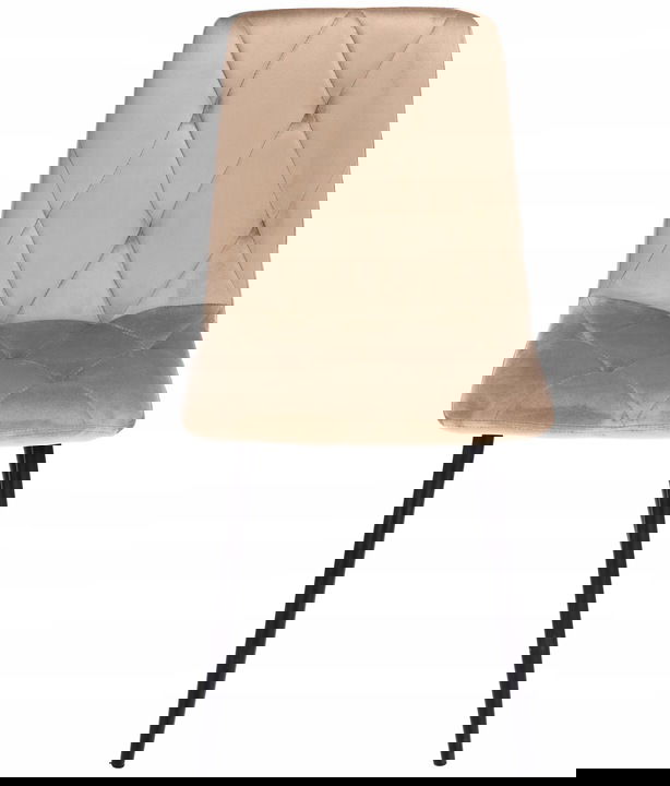 Krzesło tapicerowane jest welurem, a po wewnętrznej stronie pikowane regularnymi przeszyciami w romby. Wysokie i smukłe nóżki w czarnym kolorze wyglądają bardzo szykownie oraz gwarantują idealną stabilność.