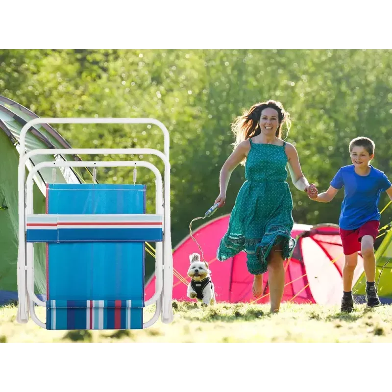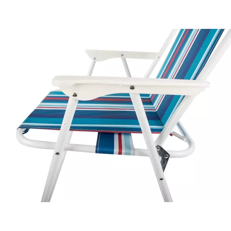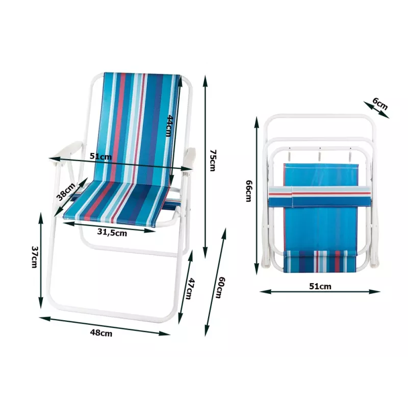 Rozkładane krzesełko turystyczne jest idealne na ryby, plażę, do ogrodu, camping lub na pielgrzymkę. Krzesło jest wygodne i stabilne. Posiada solidne i wytrzymałe rurki. Krzesło wykonane zostało z mocnej tkaniny odpornej na warunki atmosferyczne oraz uszkodzenia. Dodatkowo siedzenie zostało