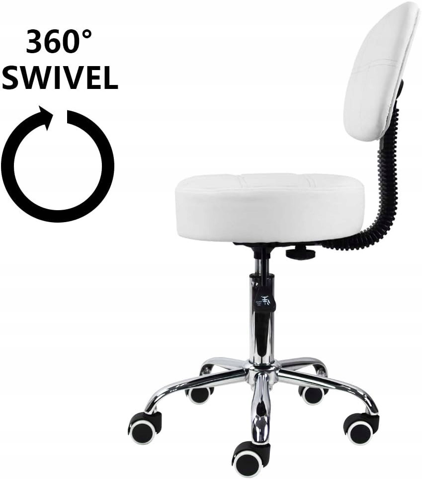 KRZESŁO TABORET NA KUŁKACH REGULOWANA WYSOKOŚĆ DO SALONU OBROTOWE BIAŁE