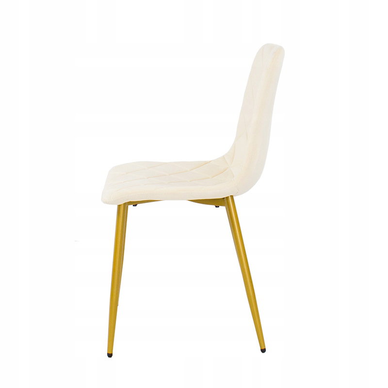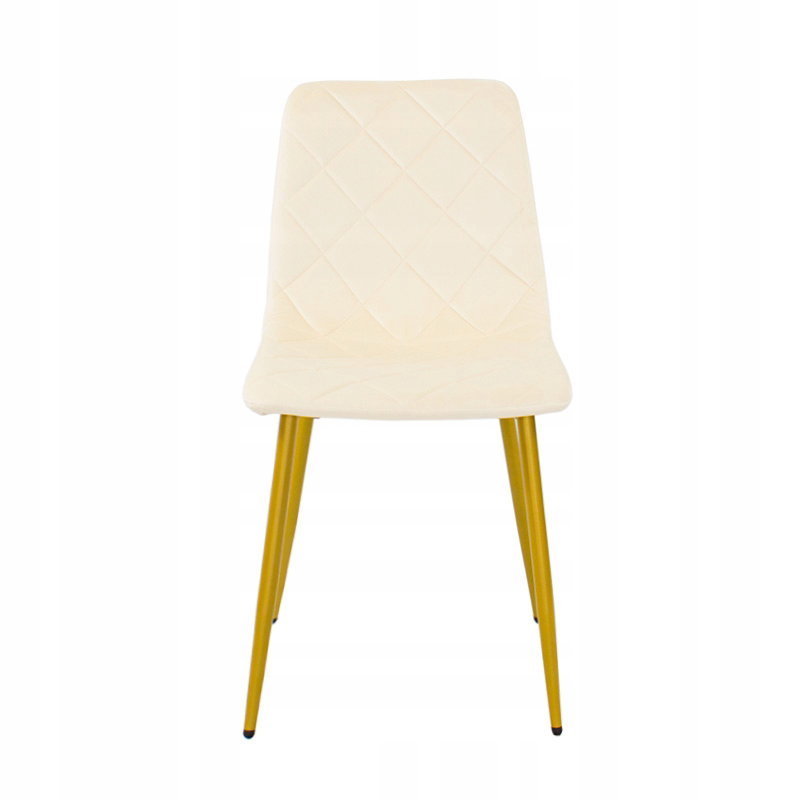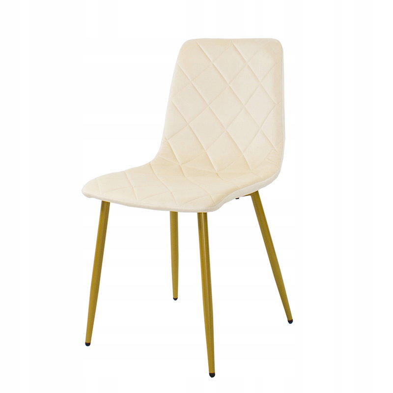 Krzesło welurowe do salonu na metalowych złotych nogach, kremowe, wzór pikowania: karo.