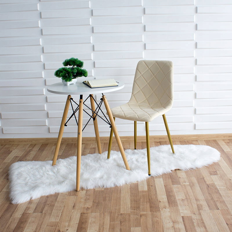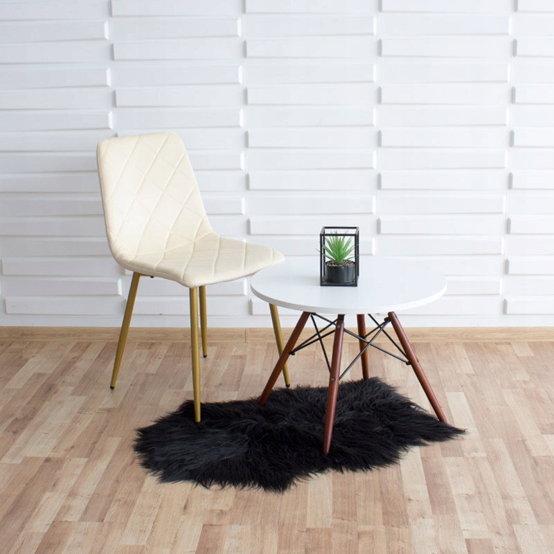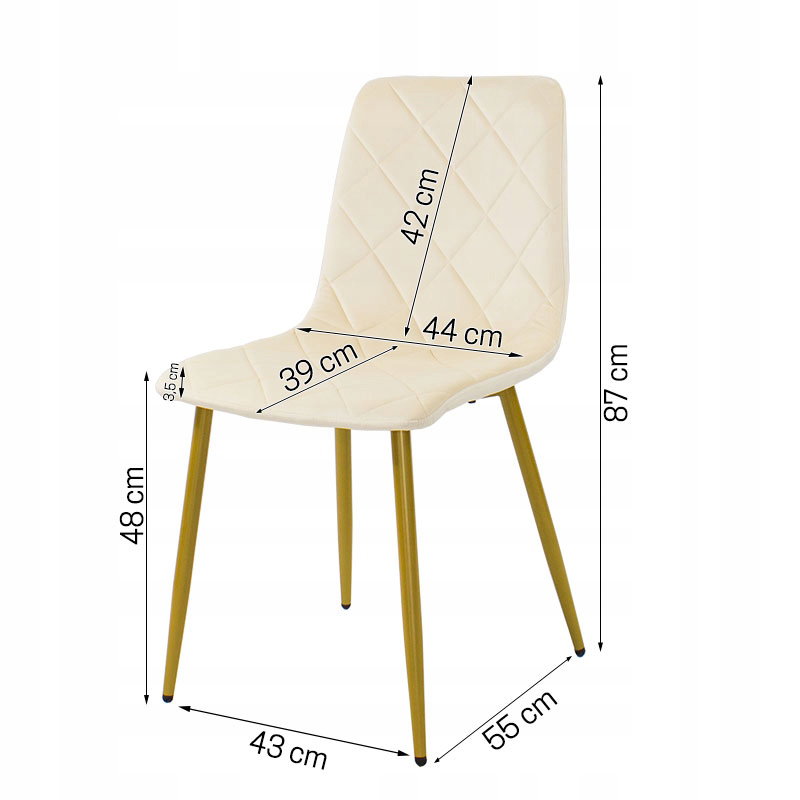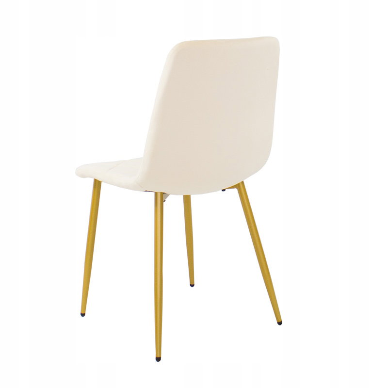 ✅ modna kolorystyka - połączenie kremowej tapicerki i złotych metalowych nóg jest przyjemne dla oka i pięknie prezentuje się w nowoczesnych wnętrzach salonu, biura czy jadalni,