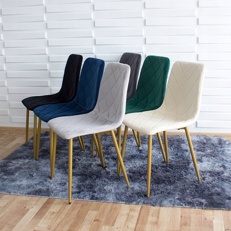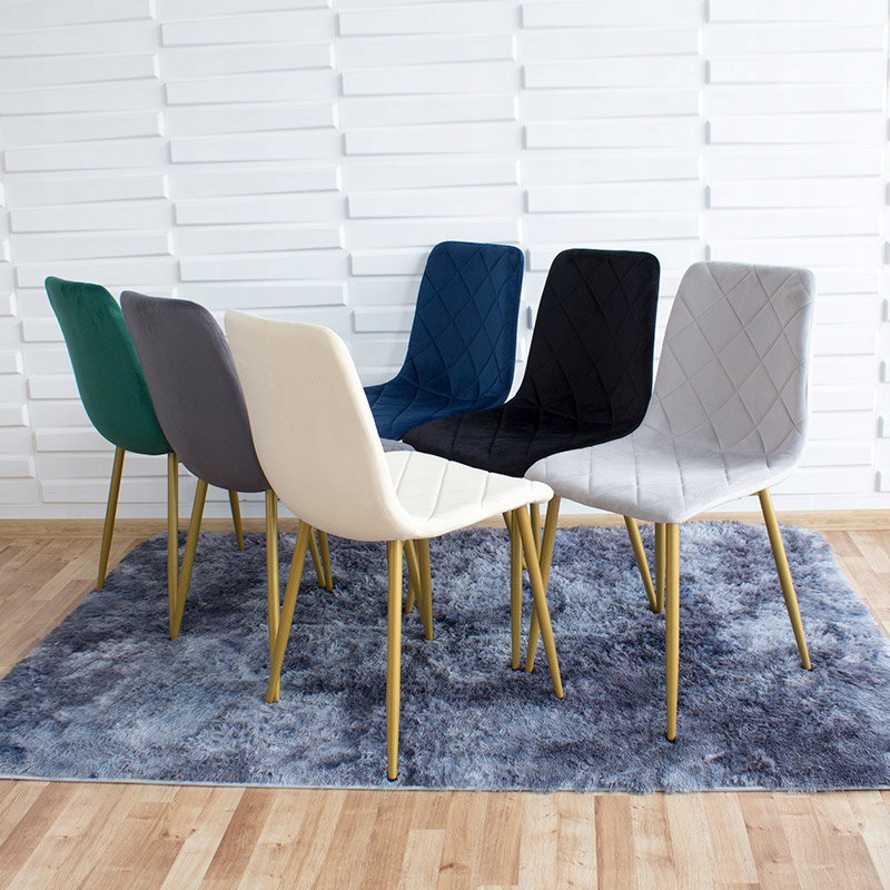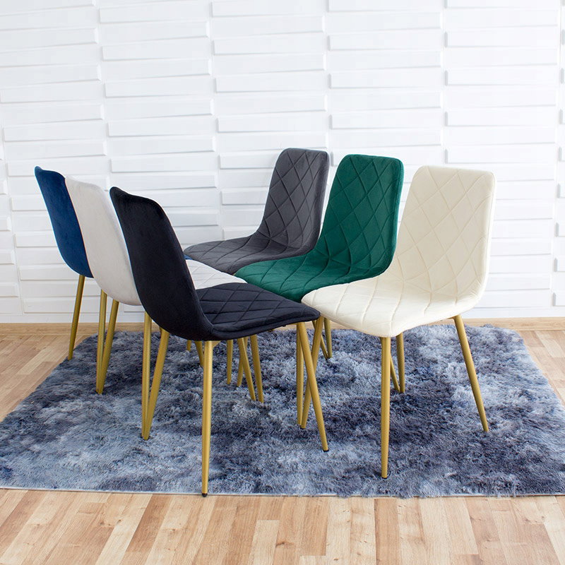 Połączenie siedziska tapicerowanego welurem, metalowych złotych nóg i modnego pikowania daje nam bardzo atrakcyjne połączenie - nie sposób odmówić temu modelowi pięknego wyglądu i wygody użytkowania.