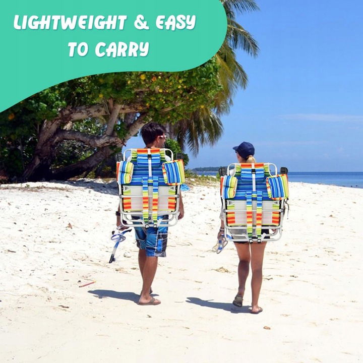 Regulowane krzesła plażowe: te leżaki plażowe z 5-stopniową regulacją oparcia, z wygodną poduszką i miękką tapicerką z frotte zapewniają nie tylko pozycję siedzącą do czytania lub rozmów, ale także pozycję półleżącą do opalania lub drzemki.