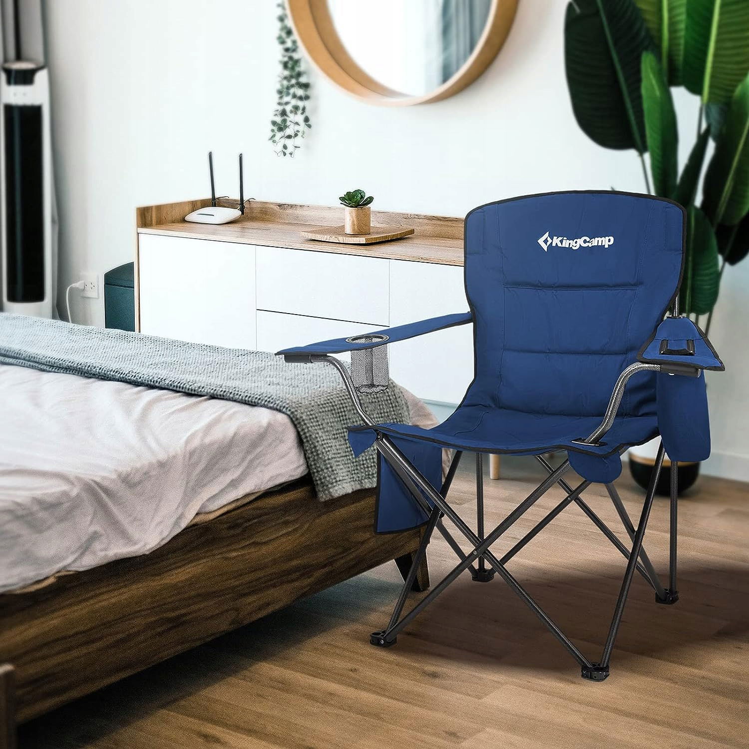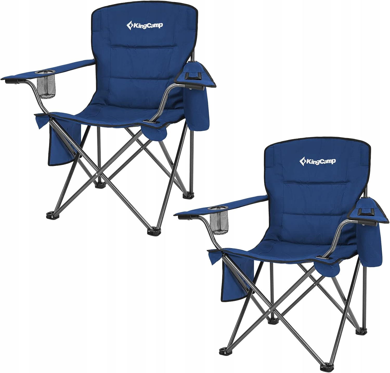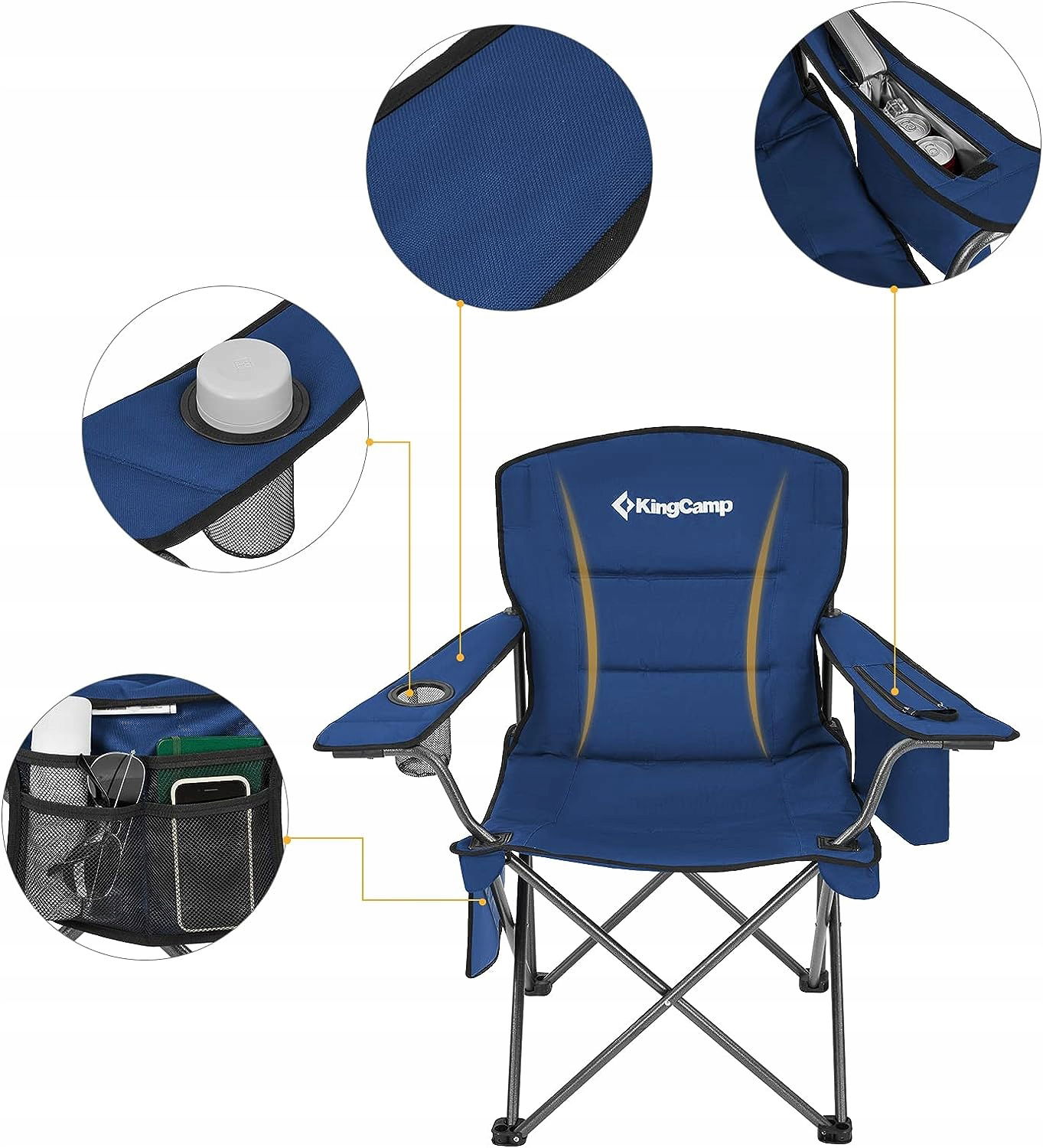 KingCamp Krzesło kempingowe z torbą chłodzącą i uchwytem na kubek, krzesła kempingowe dla dorosłych, składane krzesła na zewnątrz, do ogrodu, pikniku, wędrówek, wewnątrz, pojemność 136 kg, niebieskie