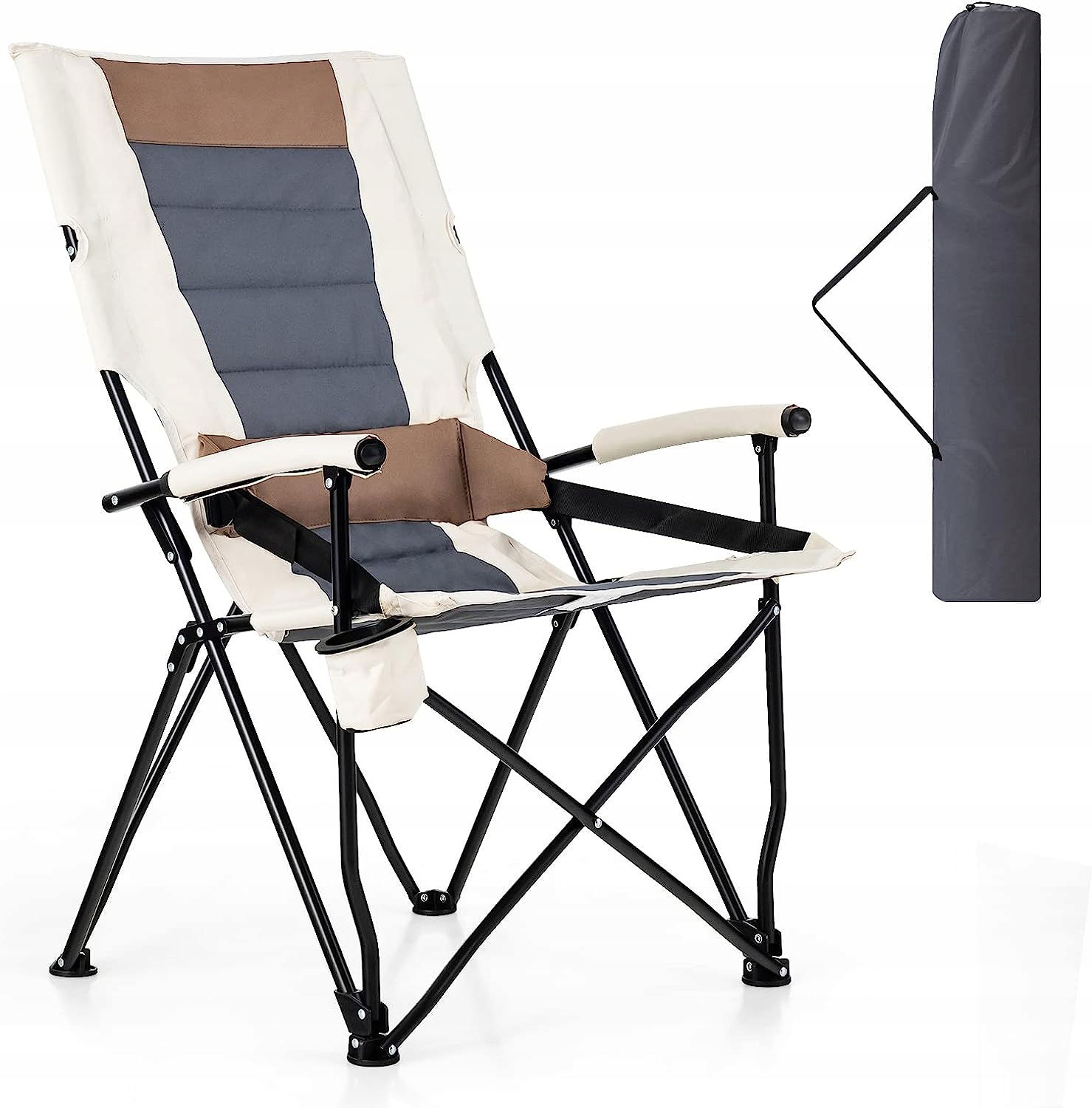 Zaprojektowany z myślą o komforcie: Dostosowując wygodny projekt, przytulne składane krzesło kempingowe jest wyposażone w wielowarstwowe oparcie zapewniające miękkie i oddychające wrażenia podczas siedzenia oraz poduszkę lędźwiową, która rozprowadza nacisk na plecy. Tkanina 600D Oxford ładnie dopasowuje się do ciała.