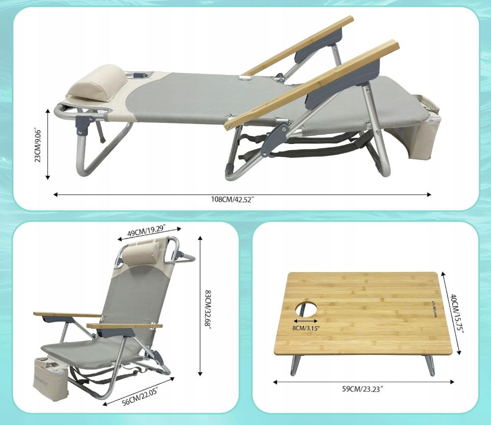 - ✴️Plecakowy leżak plażowy: Przedstawiamy nasz leżak plażowy ze składanym stolikiem, zaprojektowany z myślą o najwyższym komforcie i wygodzie. Ten wysokiej jakości stolik, wykonany z bambusa i stopu aluminium, służy jako podnóżek do relaksu, plansza do gry w cornhole oraz bezpieczna powierzchnia na butelkę z wodą, telefon, czasopisma i inne niezbędne przedmioty. Ciesz się idealnym połączeniem relaksu i praktyczności dzięki naszemu innowacyjnemu leżakowi plażowemu.