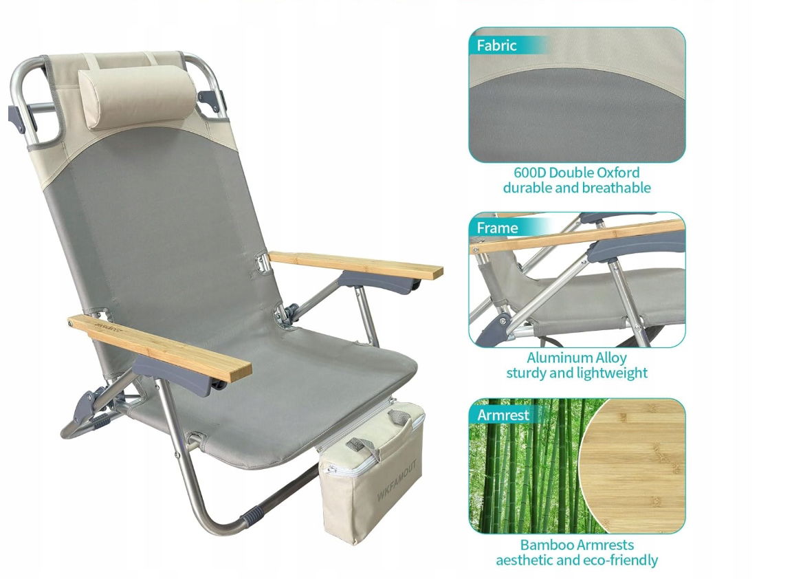 - ✴️Izolowana torba termiczna: Ten leżak plażowy jest wyposażony w odpinaną torbę termiczną, która pomieści 3-4 puszki. Torbę termiczną można nosić osobno w ręku lub przymocować do przodu lub tyłu leżaka za pomocą zamka błyskawicznego. Dzięki temu możesz cieszyć się ulubionymi napojami podczas relaksu.