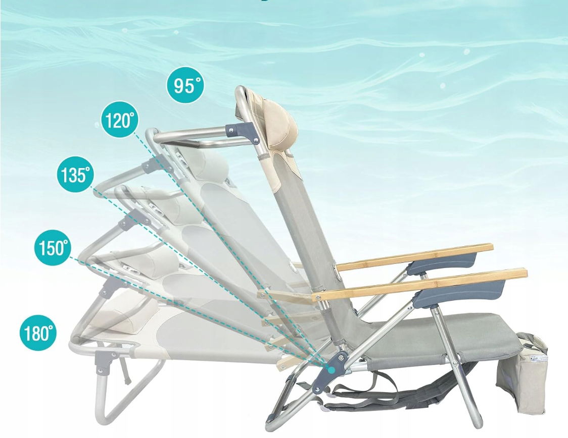 - ✴️Wygodne i praktyczne: Składane krzesło plażowe można łatwo ustawić w 5 pozycjach, w tym pozycji leżącej, co umożliwia opalanie się na całej powierzchni, wygrzewanie się na słońcu lub czytanie książki — a wszystko to w doskonałym komforcie przenośnego krzesła plażowego.