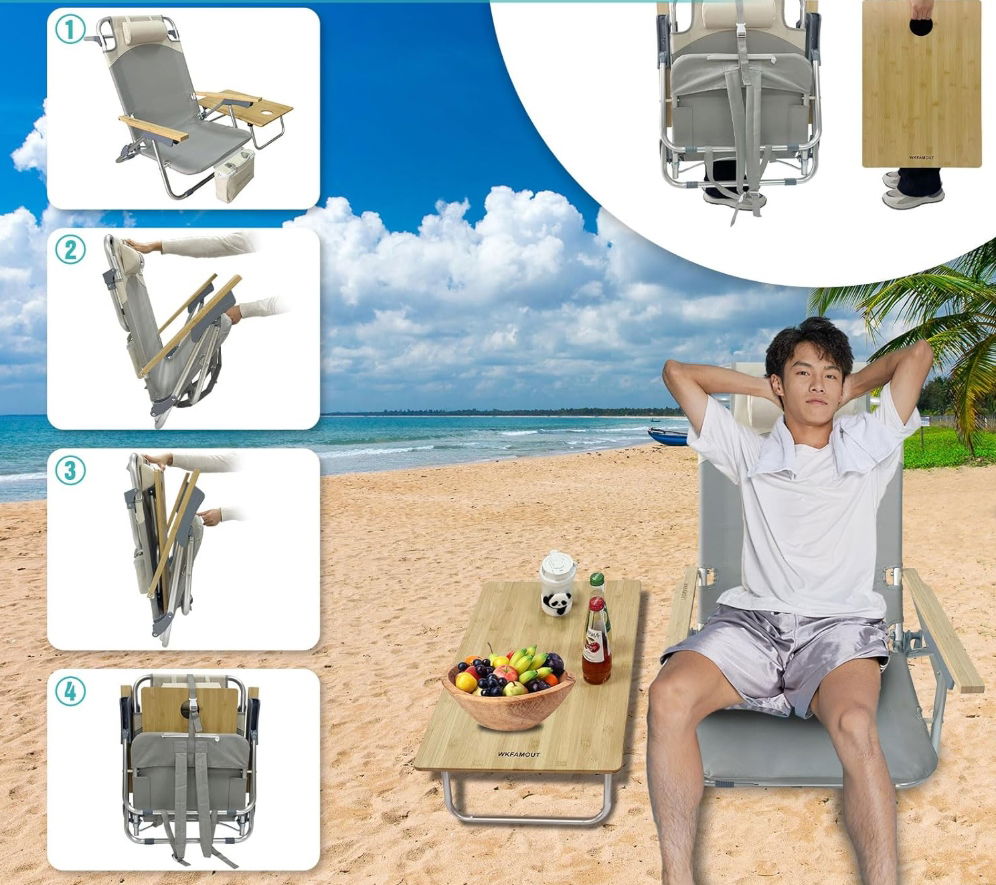 - ✴️Plecakowy leżak plażowy: Przedstawiamy nasz leżak plażowy ze składanym stolikiem, zaprojektowany z myślą o najwyższym komforcie i wygodzie. Ten wysokiej jakości stolik, wykonany z bambusa i stopu aluminium, służy jako podnóżek do relaksu, plansza do gry w cornhole oraz bezpieczna powierzchnia na butelkę z wodą, telefon, czasopisma i inne niezbędne przedmioty. Ciesz się idealnym połączeniem relaksu i praktyczności dzięki naszemu innowacyjnemu leżakowi plażowemu.