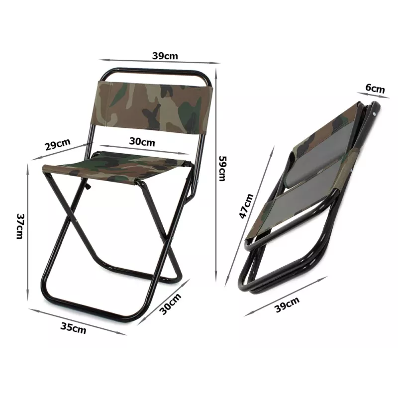 Wykonane z grubego materiału Wygodne i stabilne Stelaż wykonany z solidnych i wytrzymałych rurek Wyposażone w wygodne oparcie Po złożeniu zajmuje mało miejsca Kolor: moro Wymiary:Wysokość całkowita: 59cmSzerokość
