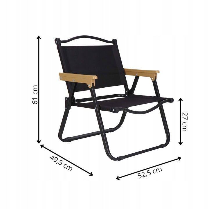 - Wymiary:Wysokość całkowita: 61 cmSzerokość całkowita: 52,5 cmGłębokość całkowita: 49,5 cmSzerokość siedziska: 46 cmGłębokość siedziska: 26 cmWysokość oparcia: 35 cmWysokość siedziska od podłoża: ok. 27 cmWymiary złożonego krzesła: 56 x 52,5 x 7,5 cm