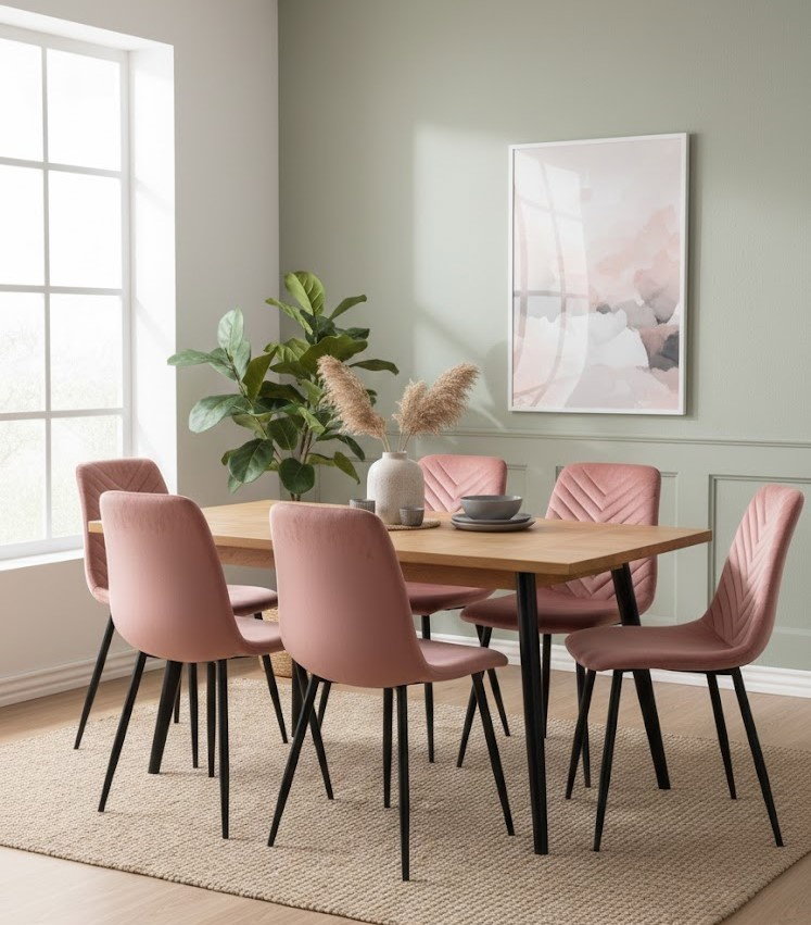 TRIO - Nowoczesne krzesło tapicerowane welurową tkaniną w kolorze różowym.