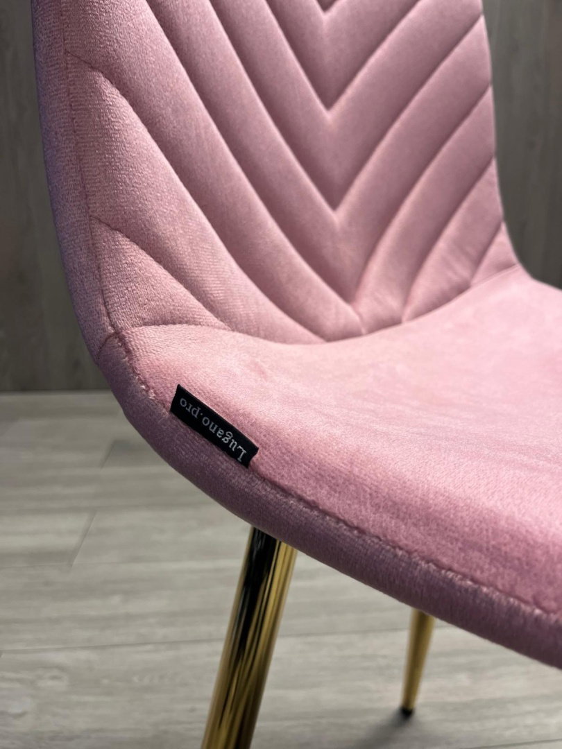 TRIO - Nowoczesne krzesło tapicerowane welurową tkaniną w kolorze różowym.