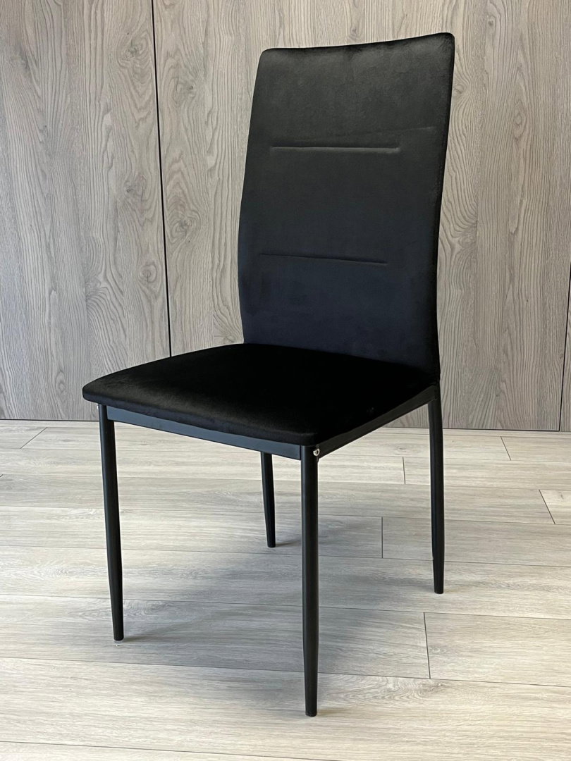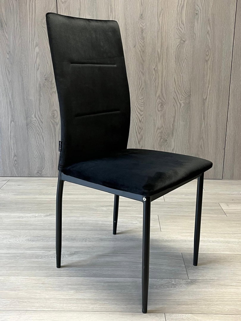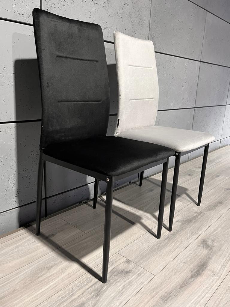 VALVA - Nowoczesne krzesło tapicerowane tkaniną welur w kolorze czarnym.