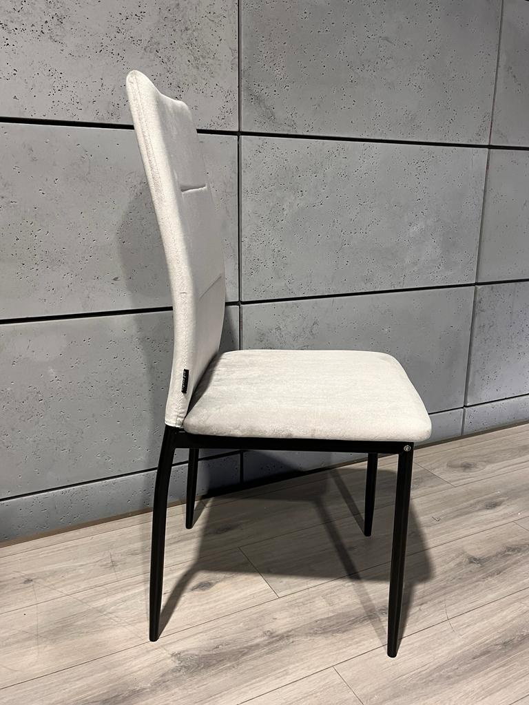 VALVA - Nowoczesne krzesło tapicerowane tkaniną welur w kolorze szarym.