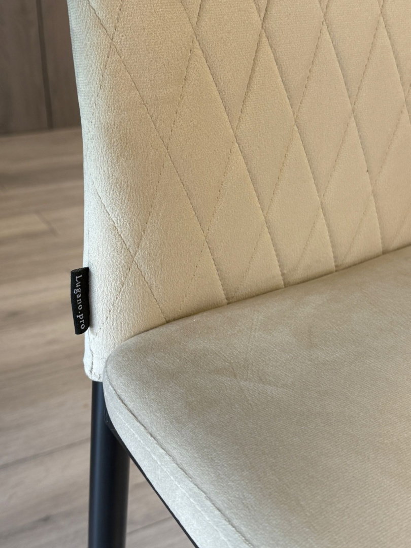 VALVA CARO - Nowoczesne krzesło tapicerowane tkaniną welur w kolorze beżowym.