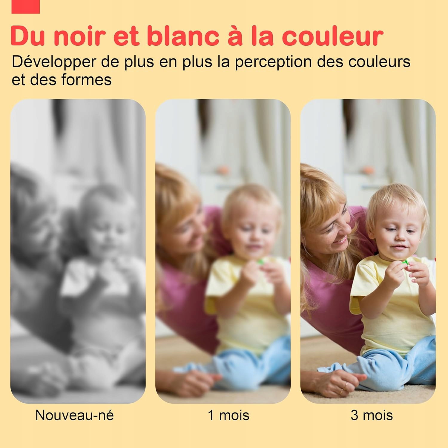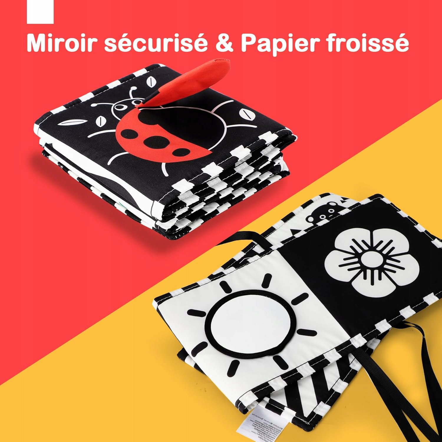 Niemowlęta rodzą się z nieco zamazaną wizją, która rozwija się przez pierwsze miesiące życia. Ta książeczka z materiału w kontrastowych kolorach (czarny, biały i czerwony) pomaga stymulować siatkówkę i nerw wzrokowy, wspierając rozwój wzroku. Zawiera 11 różnych wzorów oraz bezpieczne lusterko, które dodatkowo angażuje malucha.