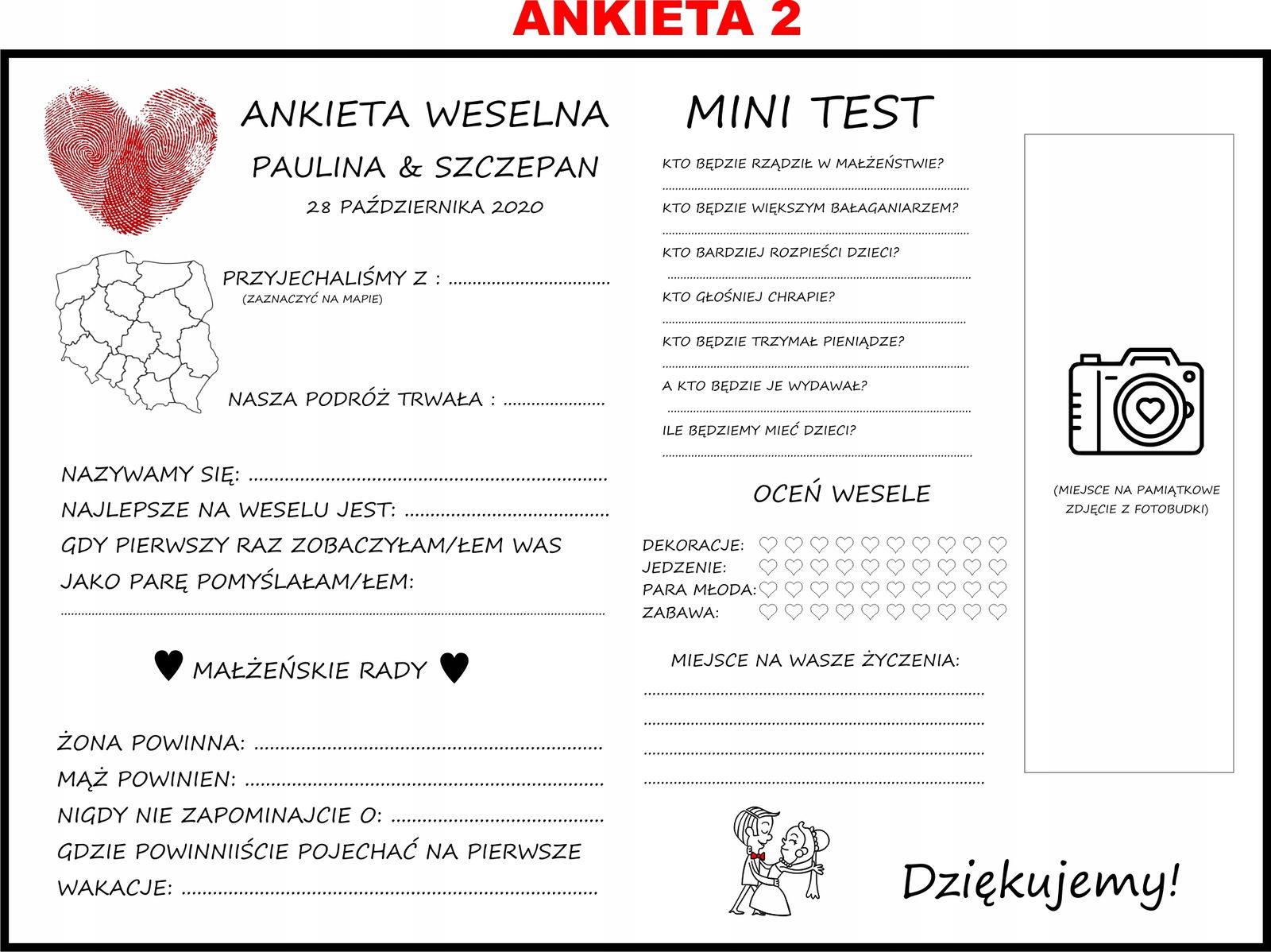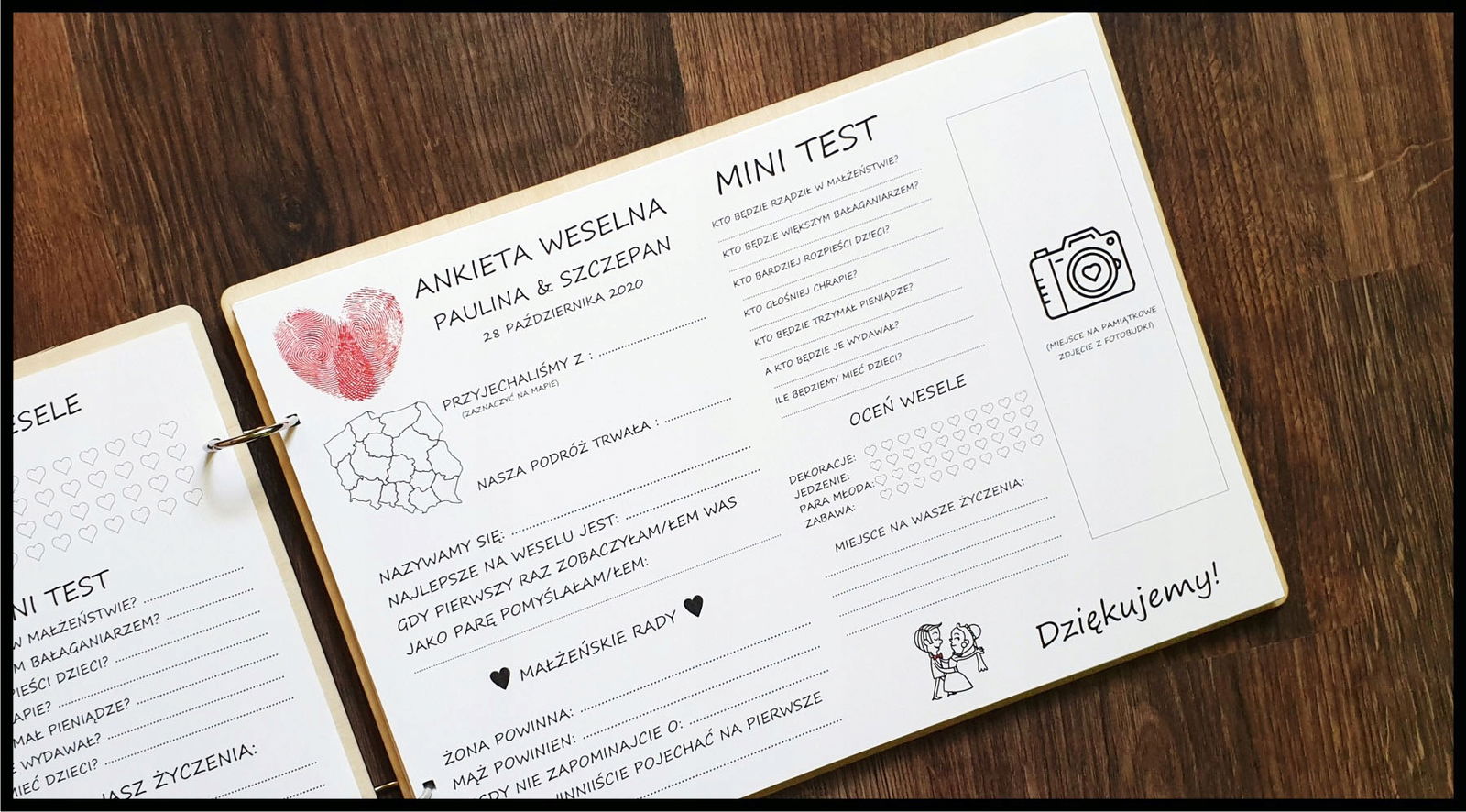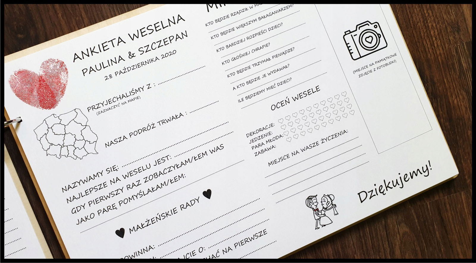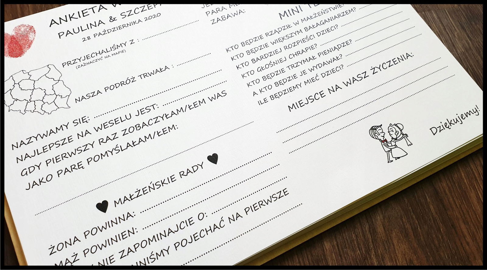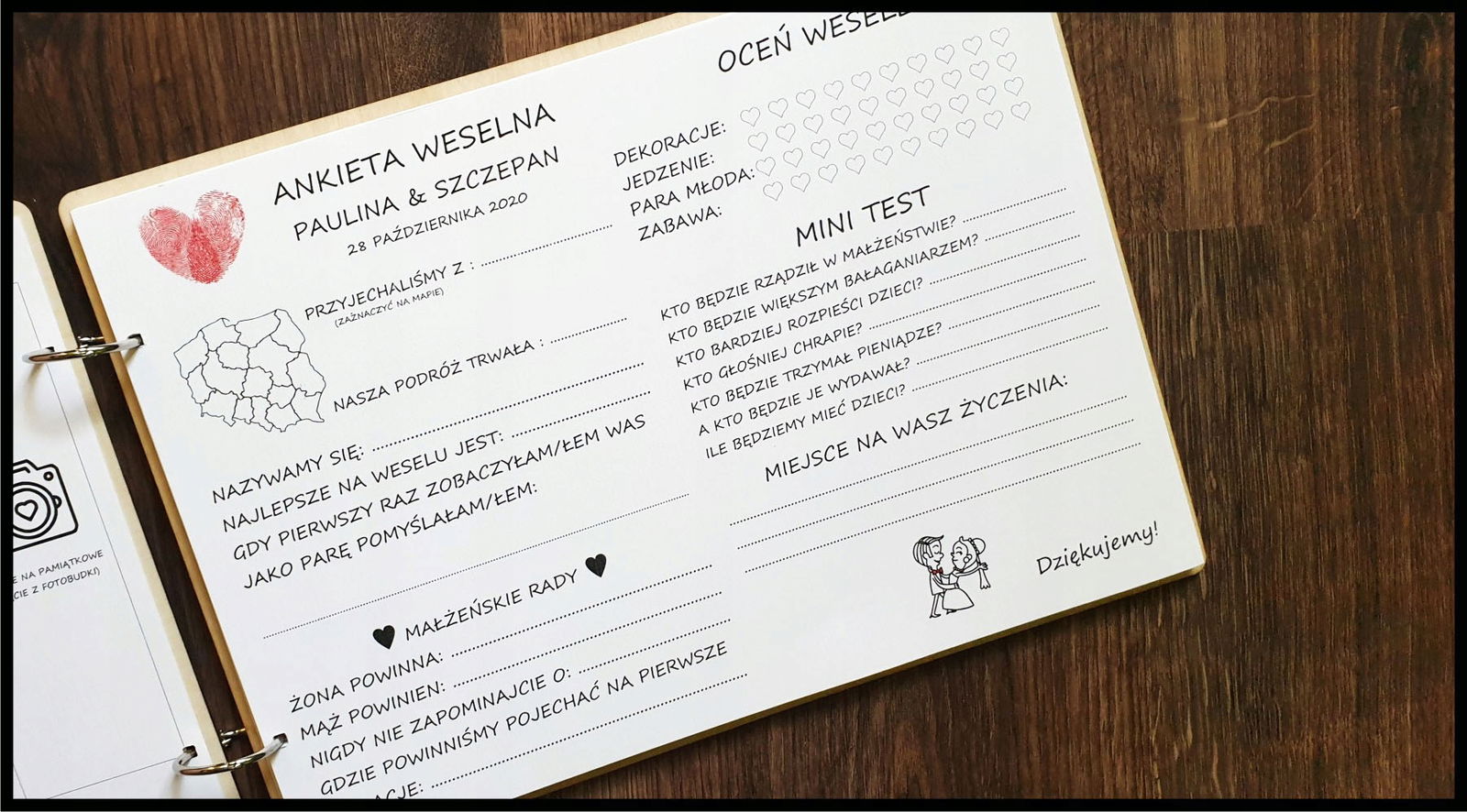 Oferujemy Państwu Księgę Gości Weselnych w formie ankiet.
