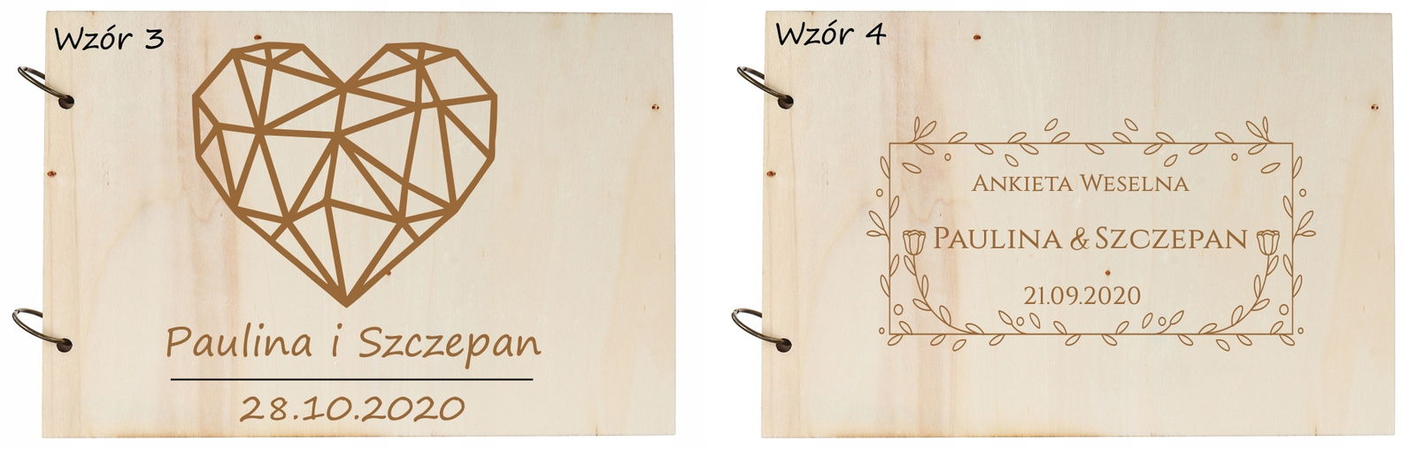 Oferowana przez nas Księga Gości Weselnych w formie ankiet pozwala w niebanalny zachować wspomnienia z tego wyjątkowego dnia. Po latach miło będzie wrócić pamięcią do tego dnia i z uśmiechem wspominać cudowne chwile. Nasza księga wykonana jest ze szczególną starannością. Okładka jest szlifowana, grawerowana laserowo. Personalizujemy Wasze zamówienia.