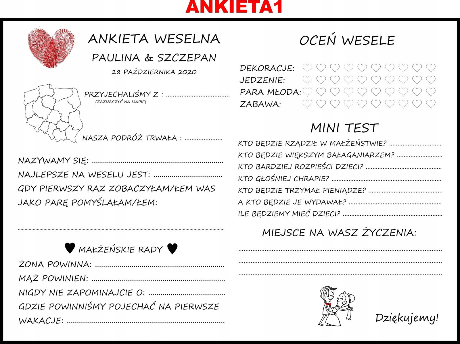 Oferujemy Państwu Księgę Gości Weselnych w formie ankiet.