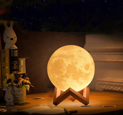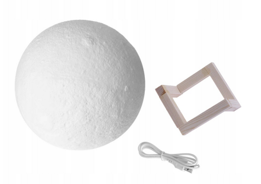 Dodaj odrobinę kosmicznej atmosfery do swojego wnętrza dzięki lampie w kształcie księżyca! Wykonana w technologii 3D z niezwykłą precyzją odwzorowuje realistyczną powierzchnię naszego naturalnego satelity. Dzięki drewnianej podstawce i kolorom RGB – idealnie dopasuje się do każdego stylu aranżacji.