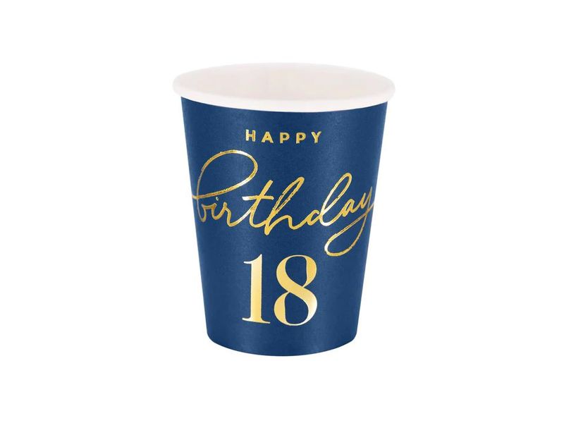 Kubeczki, Happy Birthday "18 lat", granatowy, 220 ml, 6 szt.