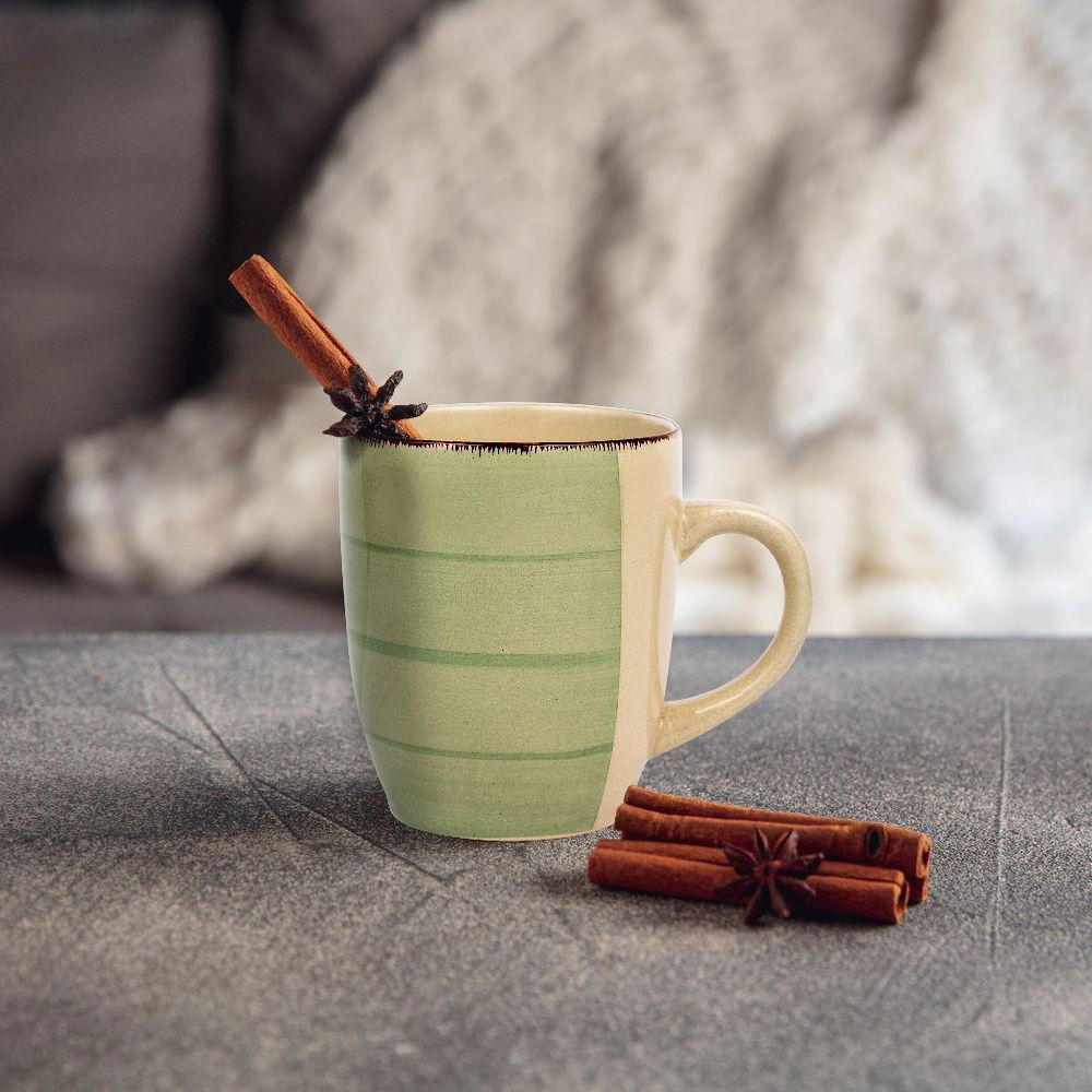 Uniwersalny kubek wykonany z wysokiej jakości ceramiki w kolorze zielonym. Niezwykle praktyczny. Przydatny w każdym domu zarówno podczas codziennych spotkań jak i wyjątkowych okazji.