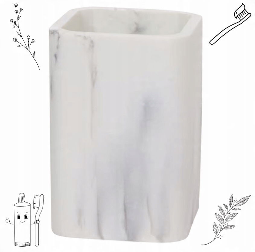 KUBEK NA SZCZOTECZKĘ DO ZĘBÓW SOLIDNY ODPORNY NA WILGOĆ 7x11 cm MARMUR
