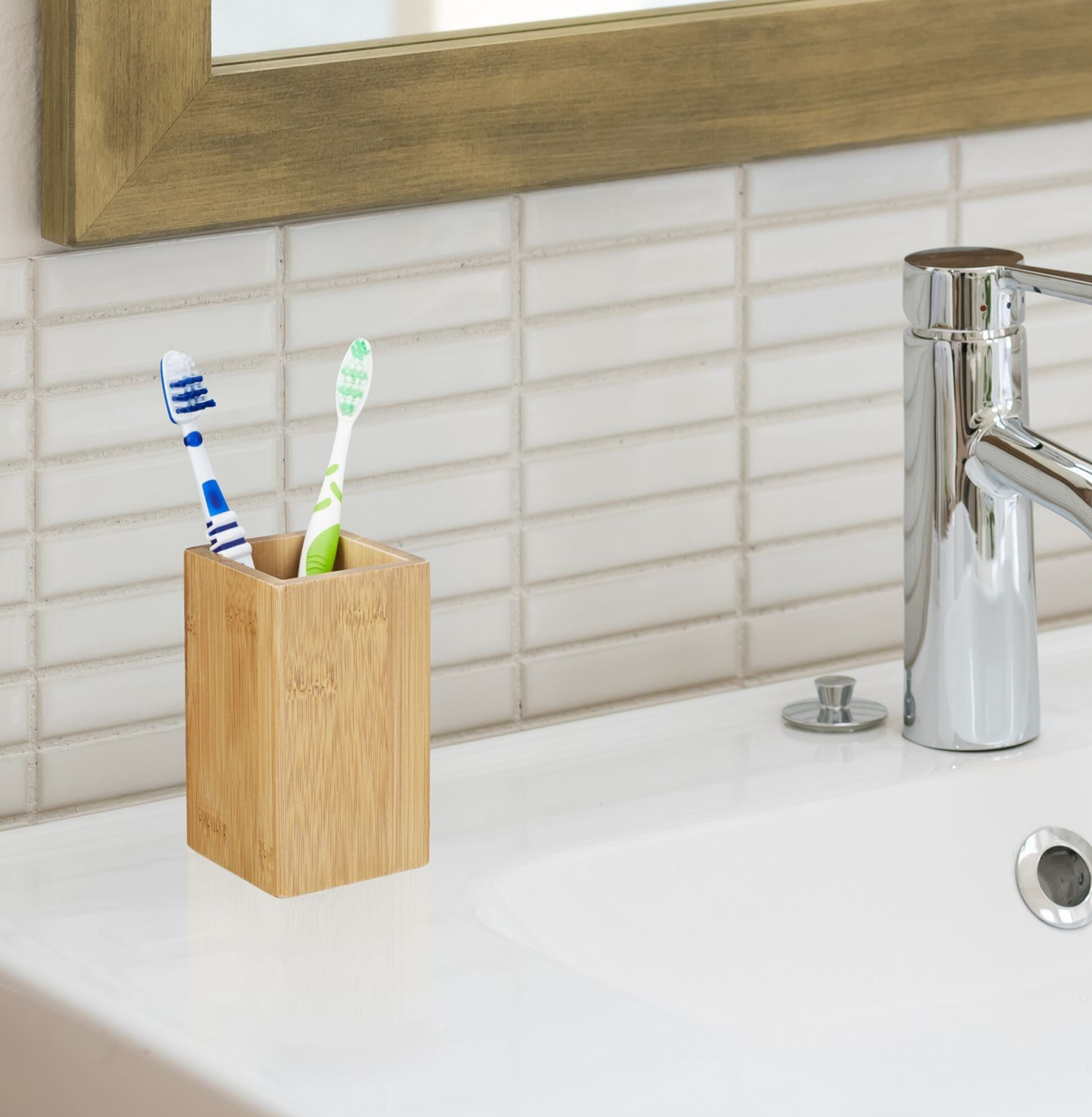 Bambusowy kubek na szczoteczki do zębów o kanciastym kształcie