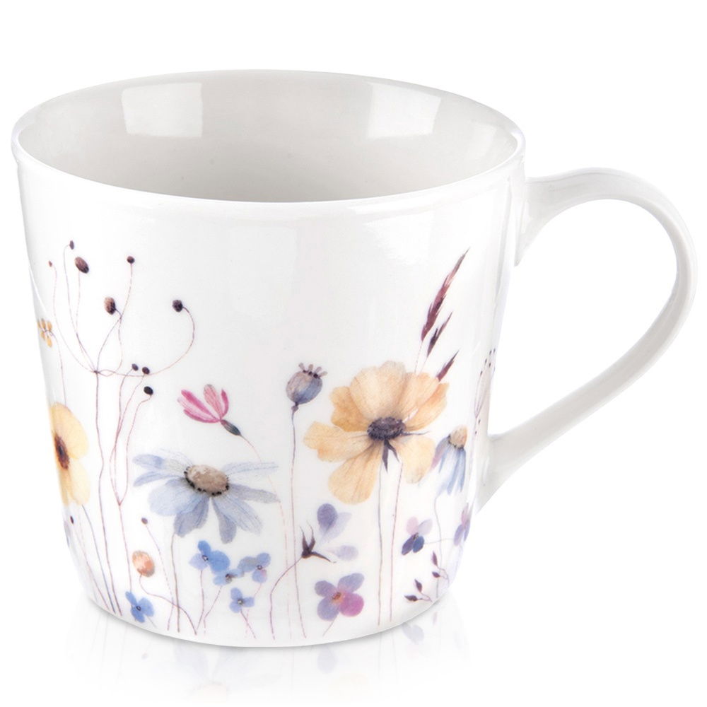 Kubek z kwiatowym dekorem idealny do picia kawy, herbaty i napojów. Prosty i klasyczny kształt sprawia, że kubek jest bardzo wygodny w użytkowaniu. Idealnie sprawdzi się w użytku domowym. Świetnie komponuje się z dowolną zastawą stołową.