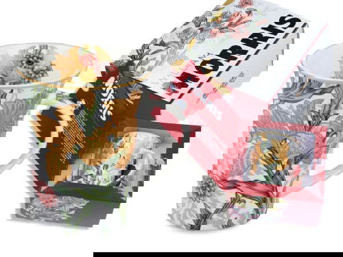 Kubek z porcelany o intensywnym i wyraźnym kolorystycznie motywie (bez złoceń), inspirowany twórczością XIX-wiecznego, angielskiego malarza i rysownika - William'a Morrisa. Misją Morrisa było tworzenie sztuki użytkowej, dekoracji wnętrz o walorach artystycznych, które upiększą smutną rzeczywistość ery przemysłowej.