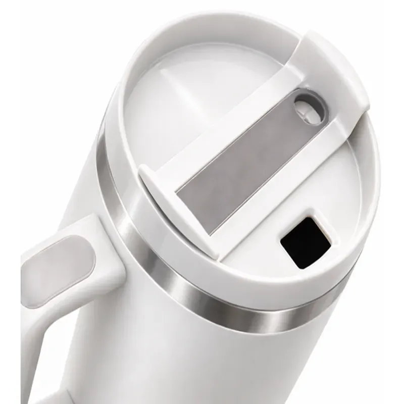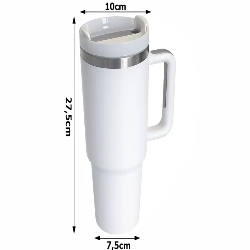 Kubek posiada wygodny uchwyt, szczelną pokrywkę oraz słomkę umożliwiającą picie bez przechylania. Dzięki temu możesz korzystać z niego w samochodzie, w biurze czy na świeżym powietrzu bez ryzyka rozlania. Szeroka podstawa zapewnia stabilność, a konstrukcja z wysokiej jakości stali gwarantuje trwałość na lata.