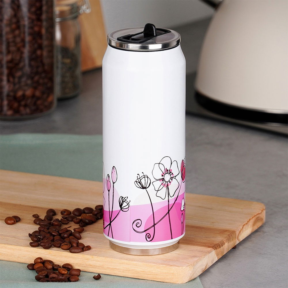 Kubek Termiczny Puszka Termos Bidon na Napoje Ciepłe Zimne Kwiaty 0,5L