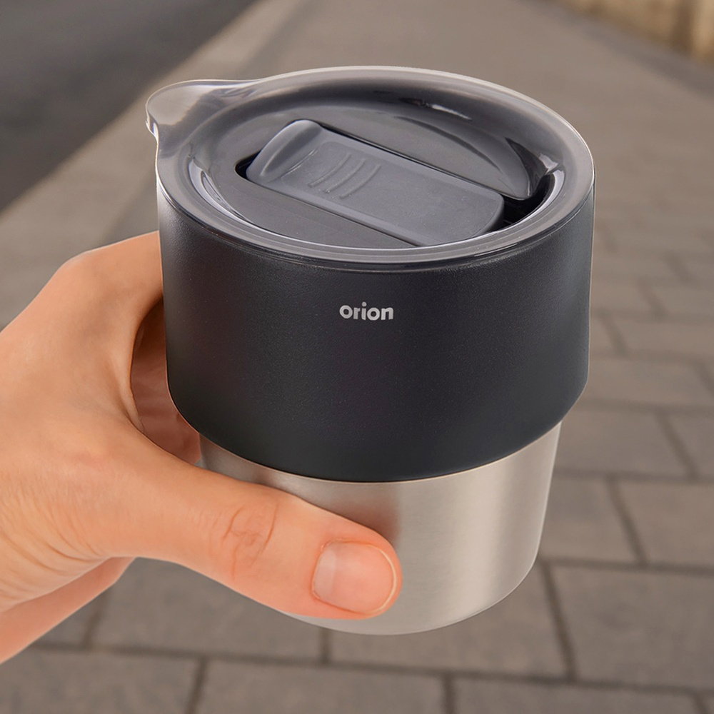 Wykonany ze stali nierdzewnej - Wnętrze kubka wykonane w całości z najwyższej jakości stali nierdzewnej, zewnętrzna część wykonana ze stali oraz tworzywa w czarnym kolorze. Pokrywka wykonana z tworzywa w czarnym kolorze, a zamknięcie ustnika wykonane z silikonu w szarym kolorze. Materiały zapewniają trwałość i odporność na codzienne użytkowanie.