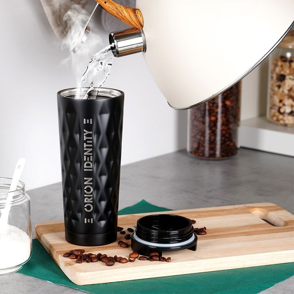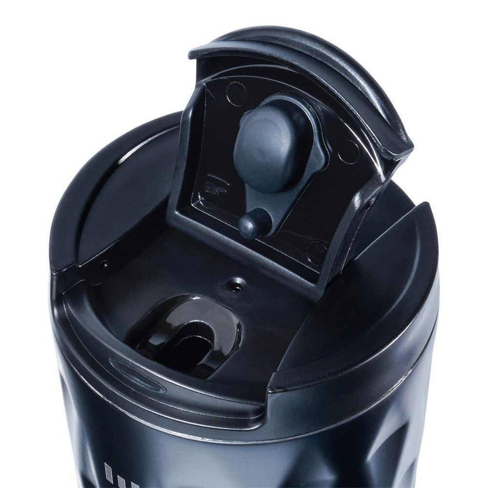 IZOLACJA PRÓŻNIOWA - Kubek wykonany z najwyższej jakości stali nierdzewnej w matowym, czarnym kolorze oraz tworzywa w czarnym kolorze. Posiada podwójną ściankę z izolacją próżniową. Ścianka ta zapewni odpowiednie podtrzymanie zimnej lub ciepłej temperatury.
