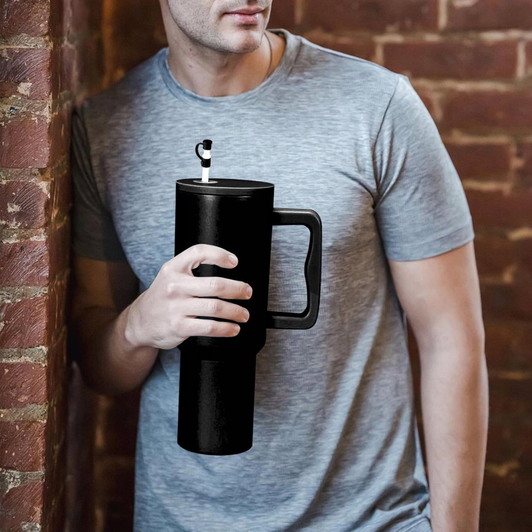 Kubek termiczny próżniowy 1180 ml (40 oz) ze stali nierdzewnej jest solidny, szczelny i wyposażony w podwójne ścianki oraz praktyczny uchwyt z rurką.
