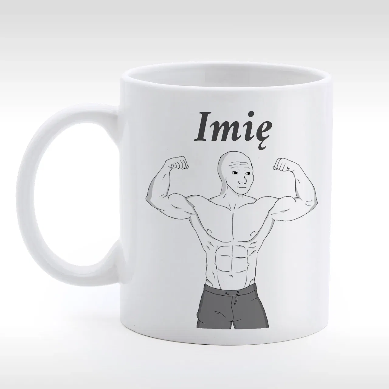 Nadruk przedstawia memicznego siłacza wraz z personalizowanym imieniem.