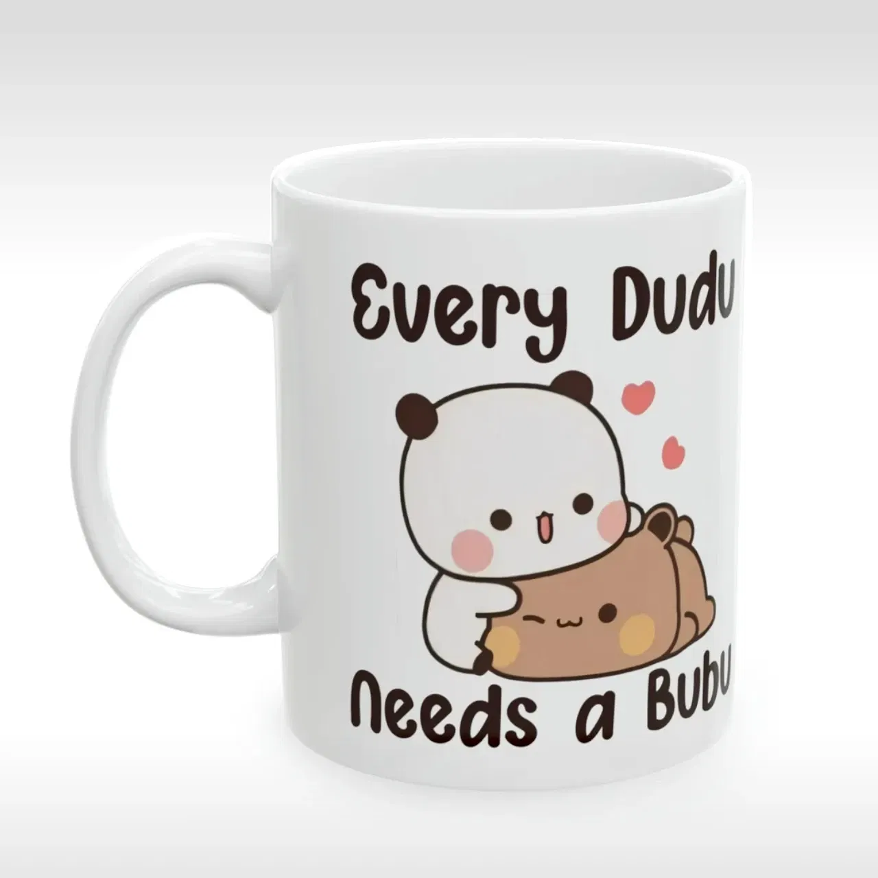 Nadruk przedstawia dwa słodki miśki i napis "Every Dudu needs a Bubu. Idealny prezent dla dziewczyny czy chłopaka.