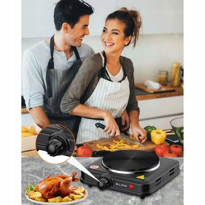 Kuchenka elektryczna jednopalnikowa Blow to przenośne urządzenie idealne do domków letniskowych, biur czy akademików. Jest łatwa w obsłudze, bezpieczna i wygodna do przenoszenia, oferując prostą regulację temperatury i szybkie gotowanie.
