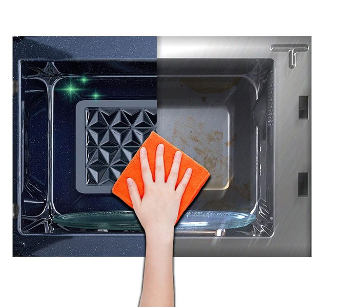 Wnętrze kuchenki pokryte jest łatwą do czyszczenia emalią, co ułatwia utrzymanie higieny.