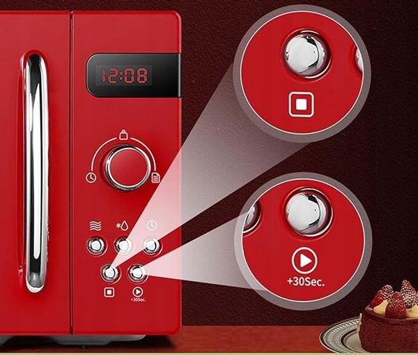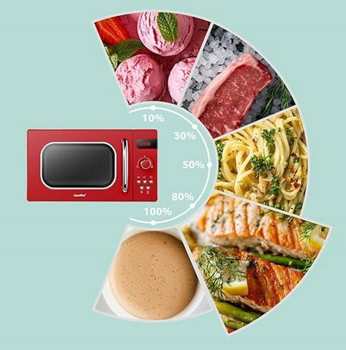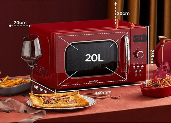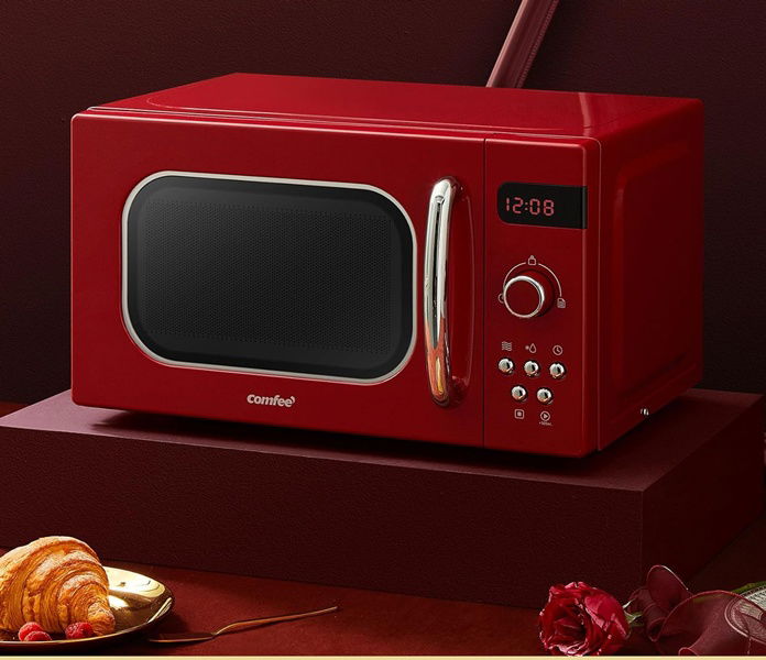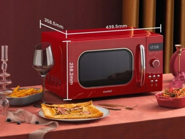 - Kuchenka mikrofalowa Comfee CMSRO 20 DI RD to eleganckie urządzenie w stylu retro, idealnie dopasowujące się do nowoczesnych, jak i klasycznych kuchni.
