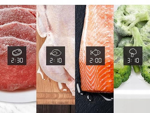 W mgnieniu oka rozmrozisz 5 najpopularniejszych rodzajów żywności: mięso, kurczaka, ryby, warzywa i pieczywo.