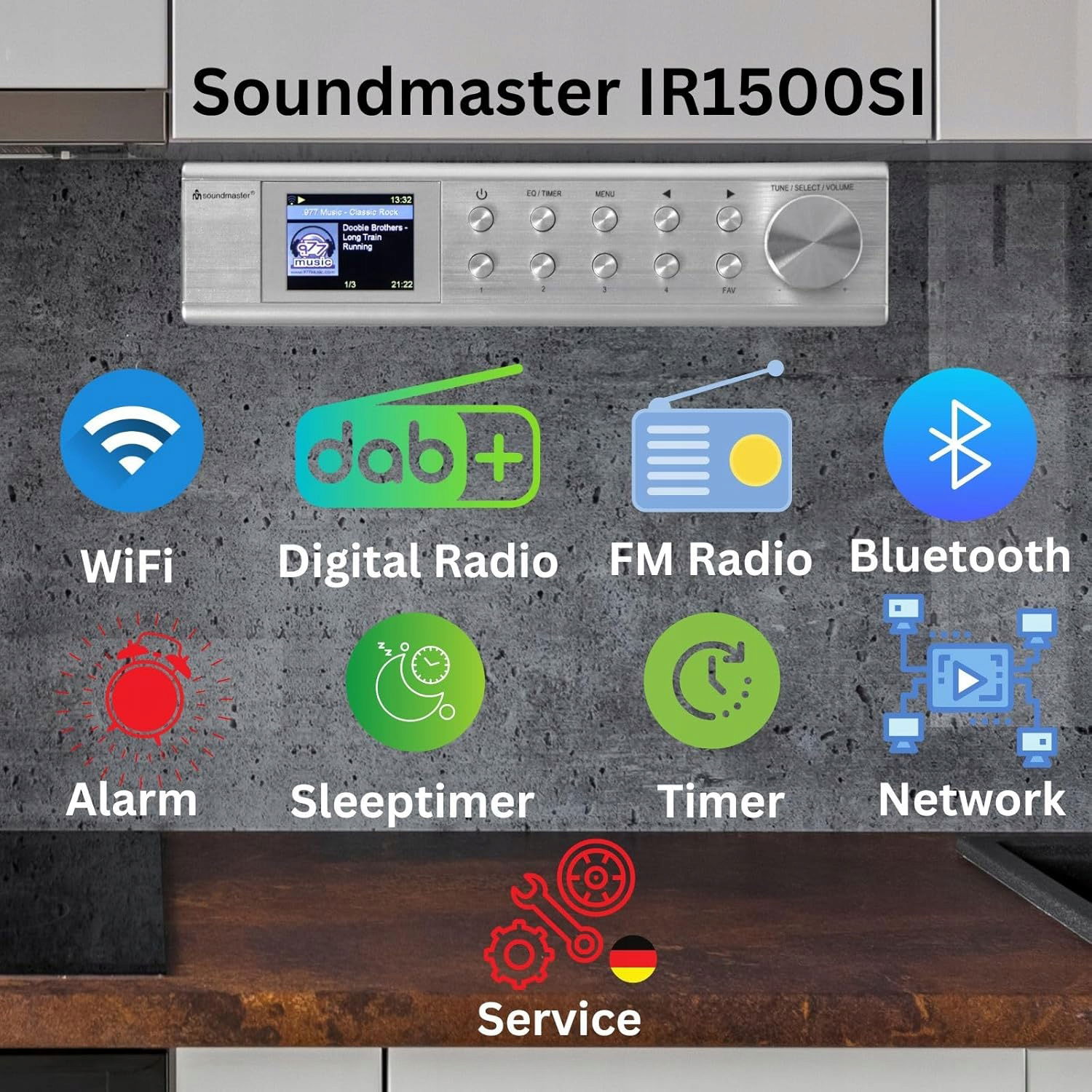 Podszafkowe, kuchenne Radio internetowe z Bluetooth Soundmaster IR1500SI pozwala słuchać ponad 14 000 stacji radiowych z całego świata, posortowanych według gatunku i kraju.