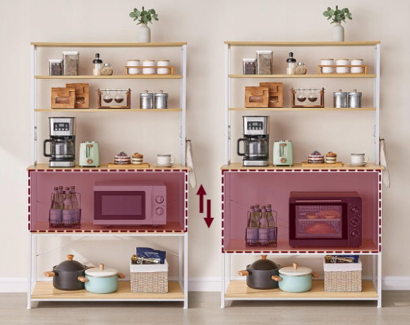 - ✴️【REGULOWANA PÓŁKA】Środkowa dolna półka może być ustawiona na 2 wysokościach, co ułatwia bezproblemowe umieszczenie naczyń, blenderów lub fritez, bez żadnych kłopotów