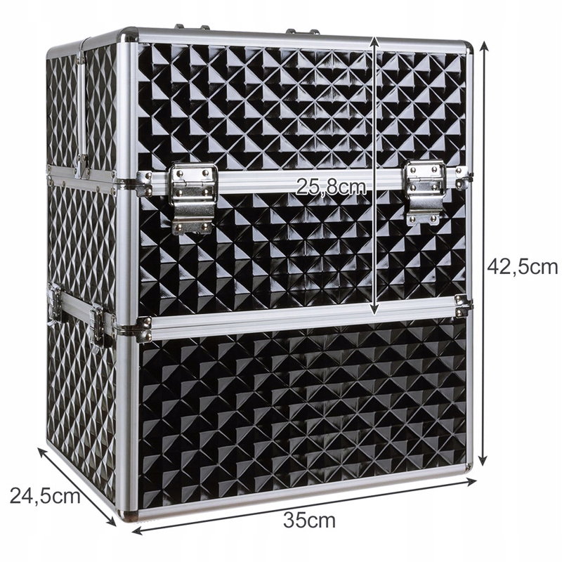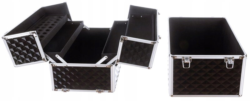 - BARDZO DUŻY ROZMIAR - idealny do organizacji kosmetyków. W tym dwuczęściowym kuferku zawsze będziesz miała każdy produkt na swoim miejscu. Możesz przechowywać i transportować nie tylko kosmetyki. Zmieścisz tu również lampę UV/LED i frezarkę. Kuferek na kosmetyki posiada też wygodny uchwyt do przenoszenia, półeczki ułatwiające organizację, a jedna z tacek wyposażona jest w organizer na lakiery.
