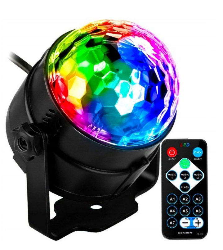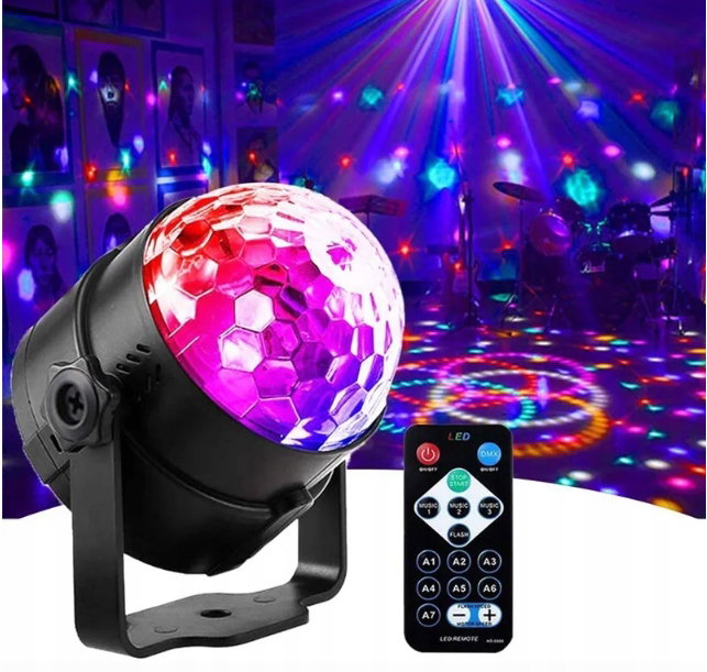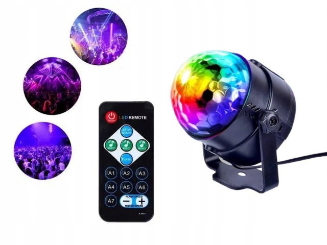 Projektor dyskotekowy kula disco LED RGB to wysokiej jakości urządzenie, które wprowadzi atmosferę wyjątkowej zabawy do każdego wnętrza. Z siedmioma kombinacjami kolorystycznymi i automatycznym programem świetlnym, zapewni niezwykły efekt zarówno na ścianach, jak i suficie.