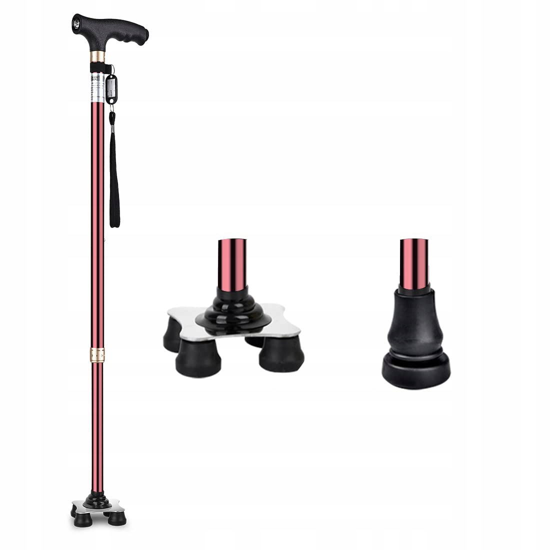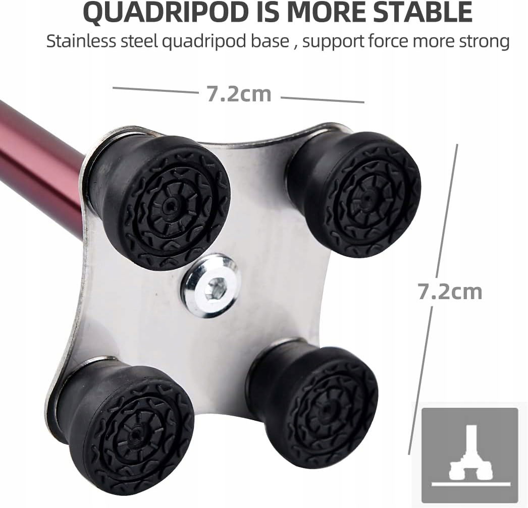 ✅ Kolor: Czerwony (1 szt. laska + 1 szt. podstawa Quadripod + 1 podstawa monopodu)