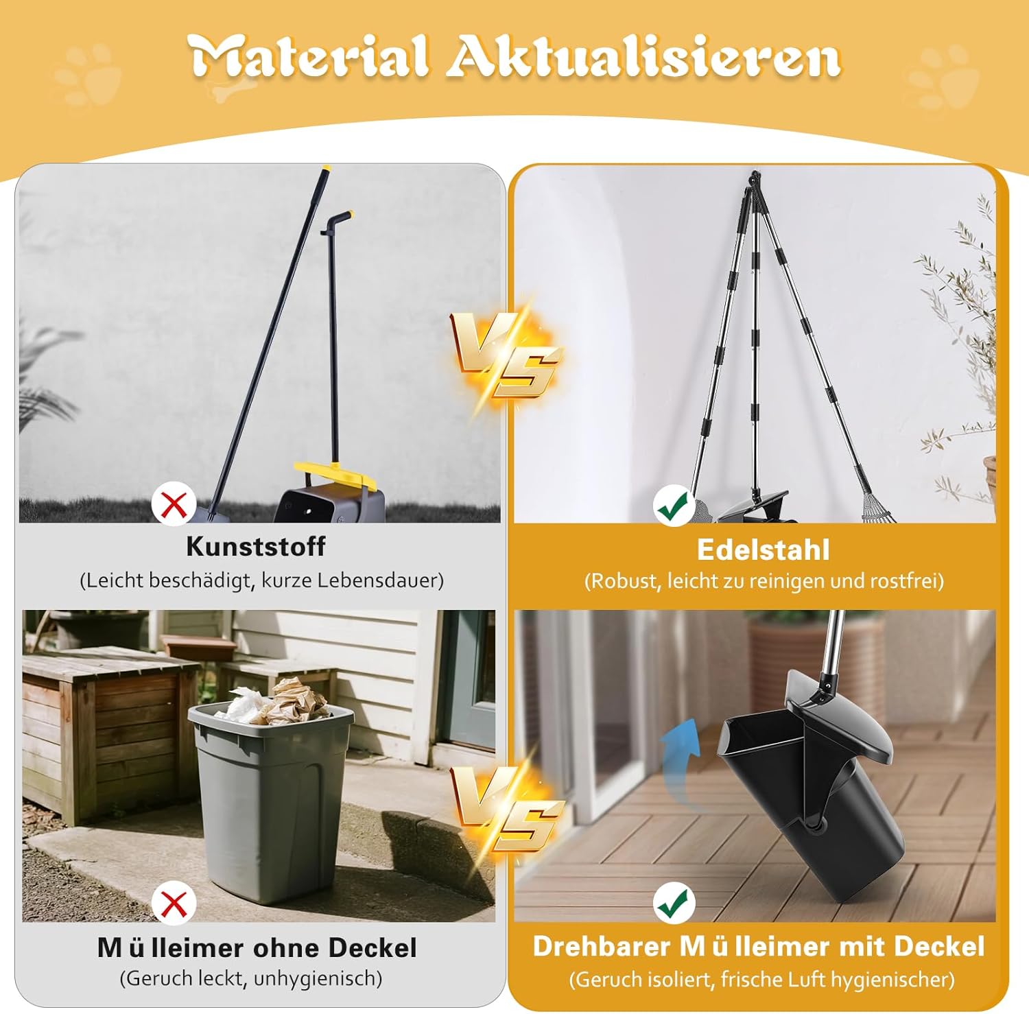 Obrotowa szufelka z pokrywką zapewnia higieniczne czyszczenie ogrodu, izolując nieprzyjemne zapachy. Bez kontaktu rąk z nieczystościami, Twój ogród pozostaje świeży.