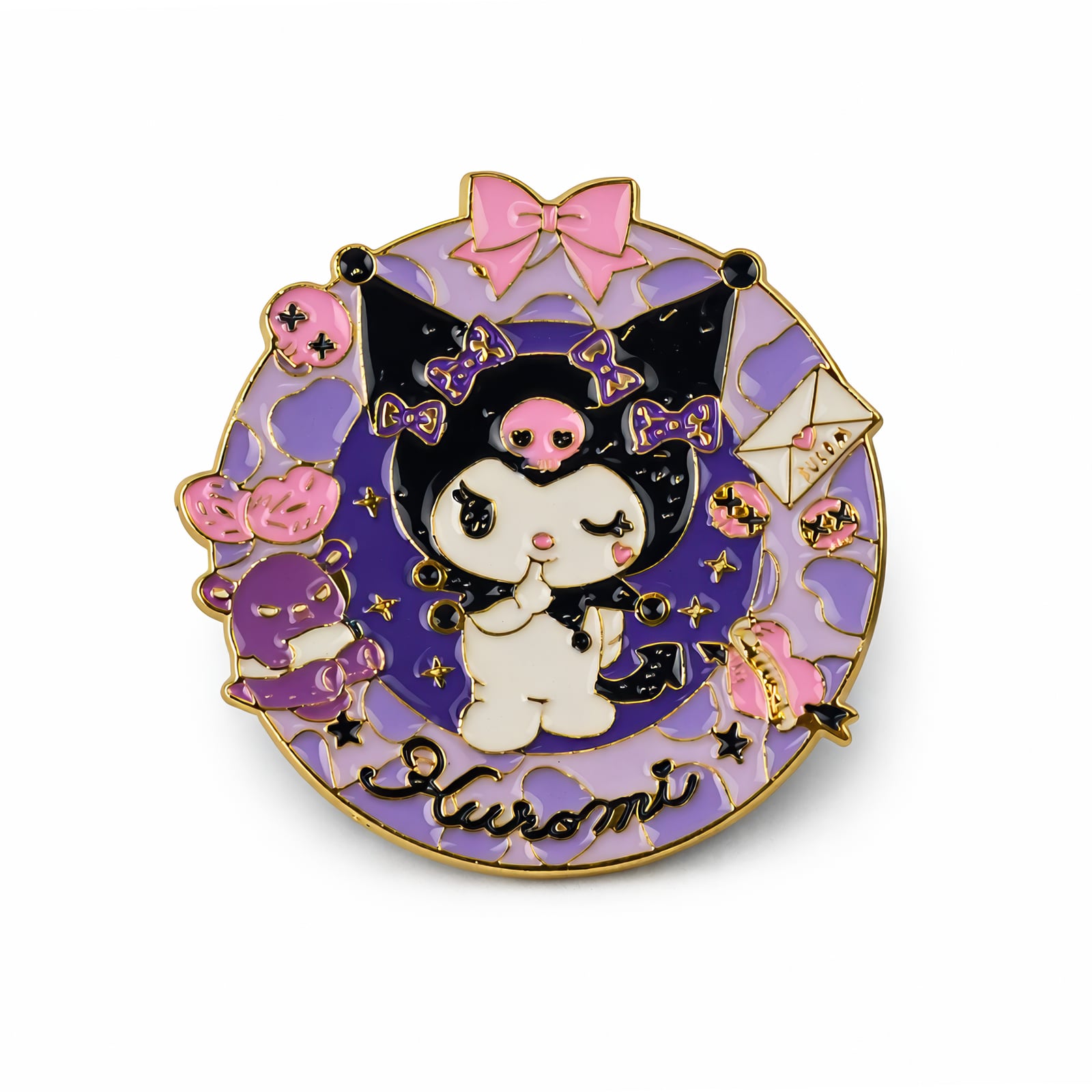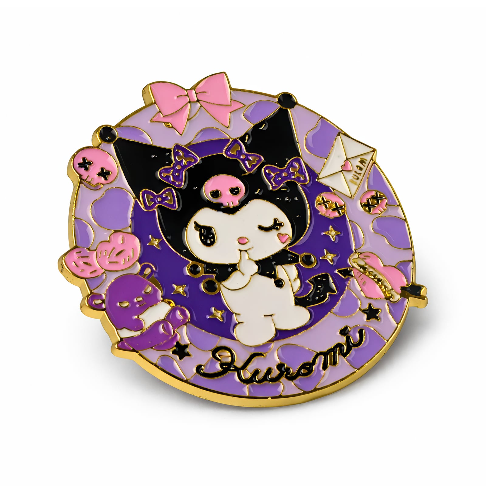 Ten oszałamiający pin z Kuromi oddaje dziki duch ulubionej postaci Sanrio w wykwintnych szczegółach. Mierzący 6 centymetrów wysokości, ten metalowy pin prezentuje mroczną i urzekającą estetykę, którą fani pokochali. Skomplikowane wykonanie ujawnia charakterystyczne cechy Kuromi z dbałością o każdy element jej projektu.
